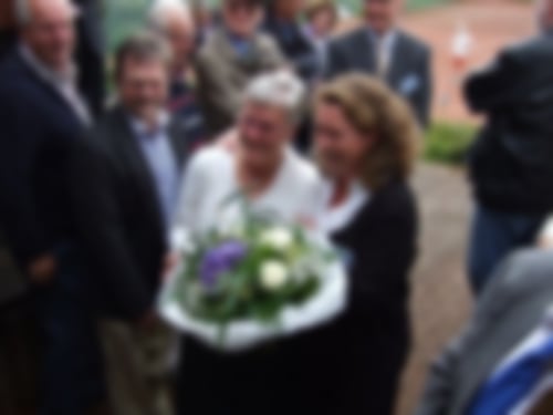 Nach den Eröffnungsreden überreichte Heike Gramatica dem „dienstältesten“ Mitglied Engelbert Wetter ein kleines Präsent . Anschließend überreichte sie der Clubhauspächterin Maria Kovacs, die sich mit ihrer Familie seit 20 Jahren um das leibliche Wohl der Vereinsmitglieder und ihrer Gäste kümmert, zum Dank einen Blumenstrauss.
